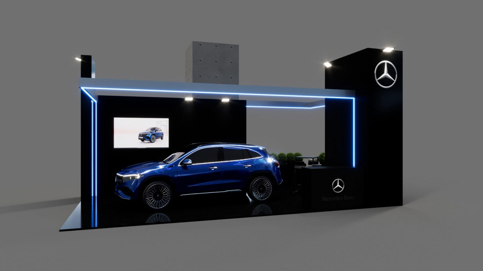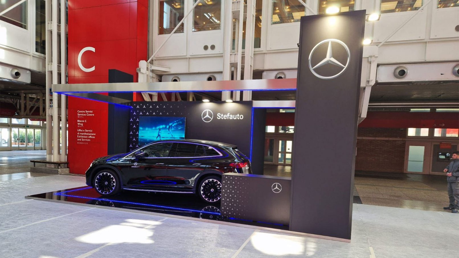 Un mood total black che emana eleganza e stile con il suo design lucido e satinato. I dettagli in satinato sul fascione aggiungono un tocco di raffinatezza, mentre il gioco di volumi e profili di luce enfatizzano la bellezza del veicolo esposto